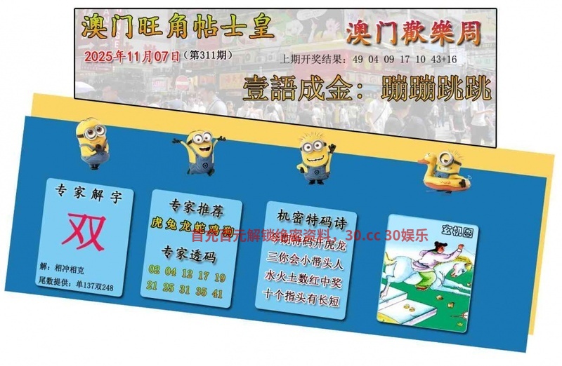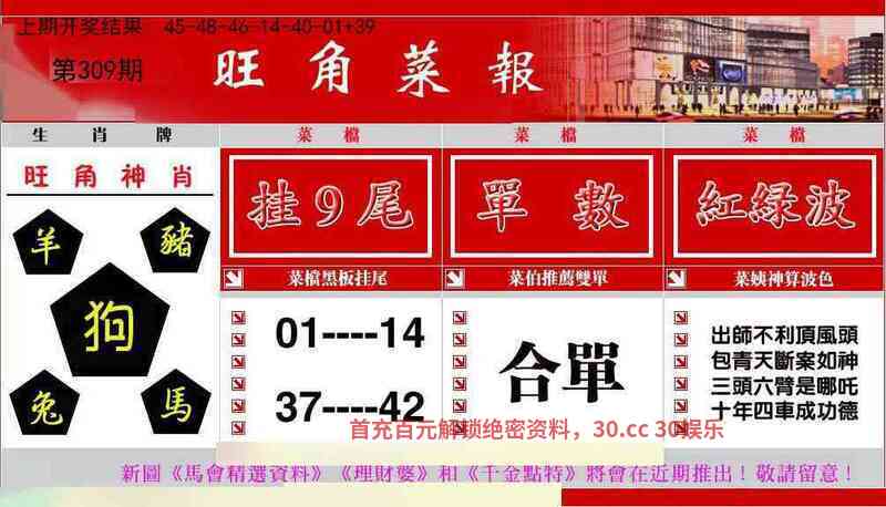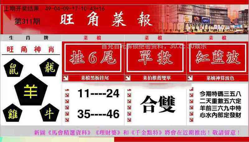 307期单【羊牛猪兔】 双 【狗马猴虎】开狗20准