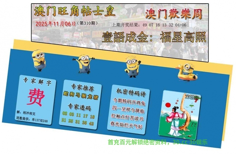 | 308期 | 《马虎羊狗鸡兔》六肖大胆包10万 | 开:兔39准 |