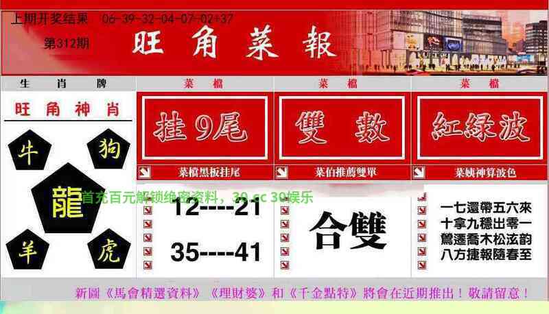 312期⑨肖╠龙鼠兔鸡猴猪羊狗牛╣开:龙14中